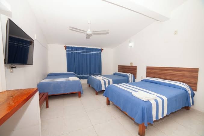 Habitaciones y baños limpios, con aire condicionado y ventilador. La tele es viejita pero tiene gran cantidad de canales. Nos tocó en la habitación 1 que tiene 3 camas y balcón. El lugar está bien ubicado. Sin duda es un excelente lugar para el precio Venimos huyendo del hotel playa Santa cruz, el peor hotel en el que hemos estado,